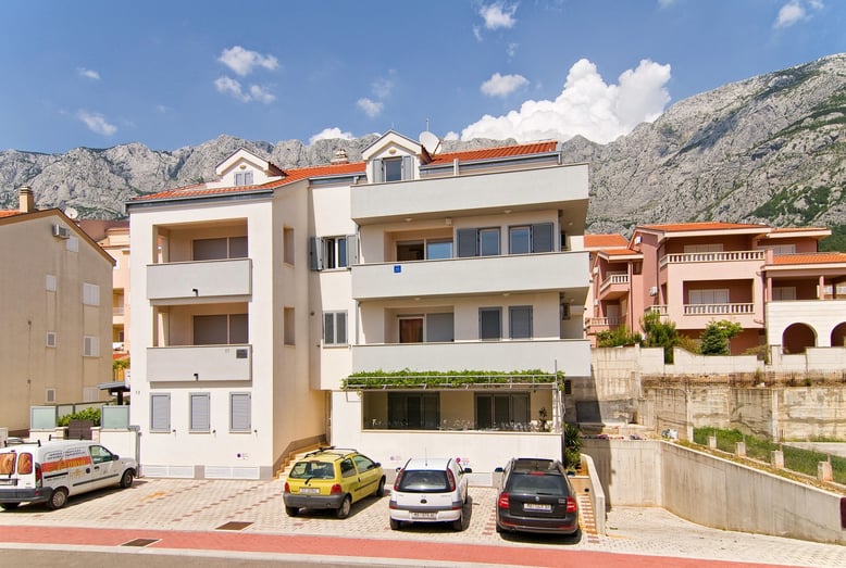 In einer modernen, urbanen Villa mit acht Wohnungen, in Makarska, Stadtteil "Zelenka", haben wir eine Wohnung mit drei Schlafzimmern auf zwei Etagen zu vermieten.